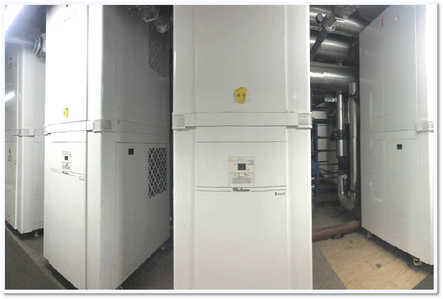 2018年更換9臺1400kW全預(yù)混高效冷凝熱水鍋爐,室內(nèi)溫度約25℃,2018年-2019年采暖季的燃氣消耗總量186萬元,折合每采暖期耗氣3.5m³/㎡。